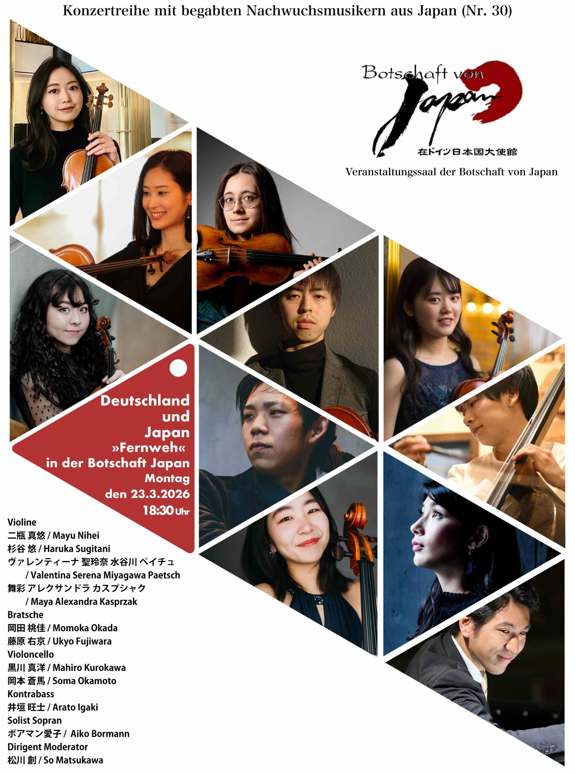 Am 23. März 2026 (Montag) um 18:30 Uhr lädt die Botschaft von Japan zu einem Konzert ein.